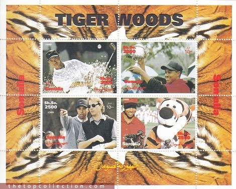شیت یادبود تایگر وودز گلف باز معروف آمریکائی چاپ سومالی
