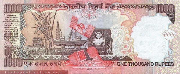 1000 روپیه هند چاپ 2012
