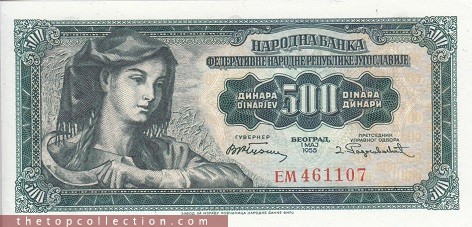 500 دینار یوگسلاوی چاپ 1955 (جفت بانکی )